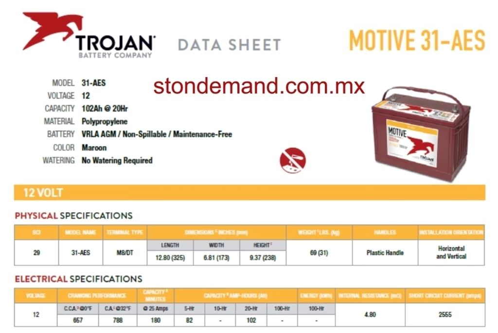 Batería Trojan 31-AES AGM 12V 102AH, sellada,