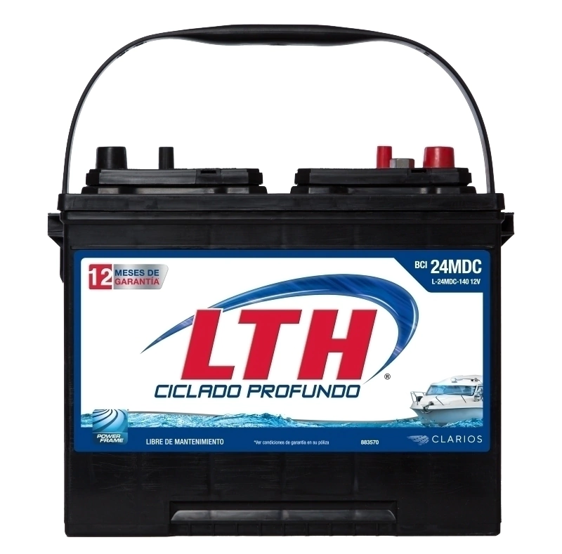 Batería marina LTH L-24MDC-140 12 volts, 80AH, 140 min@25A, Largo: 278 mm, Ancho: 174 mm, Alto total: 228 mm, 20.6 Kg, Polaridad (+)/(-)