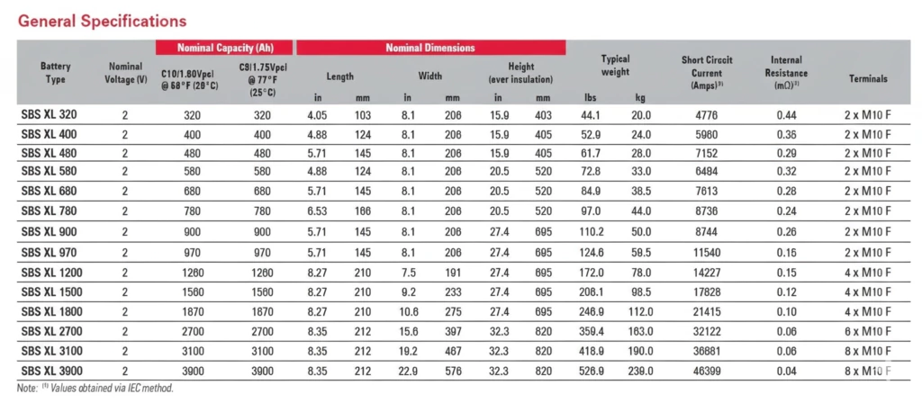 • Excelente rango de amperios-hora: de 320 a 3900 Ah